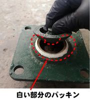 交換方法古いパッキンをラジオペンチ等で引き出して、かわりにこのパッキンを押し込みます。全体に均一になるように手で調整します。差し込みの際は、シリコングリスなどを塗ると良いです。